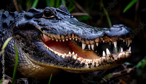 © iskandar, Obraz premium Close-up of an alligator's head, mouth open