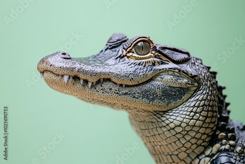 Obraz premium Close-up of an Alligator's Head with a Green Background