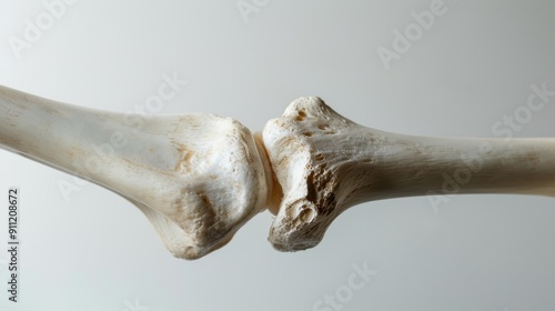 © Shozib, Fototapeta premium Close up of an animal leg bone joint on white background showing texture and detail