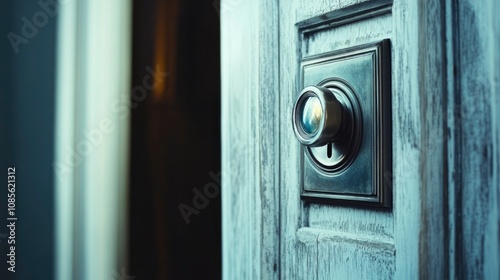 © IMPic, Fototapeta premium Close-up of an Antique Door Knob and Keyhole on a Weathered Wooden Door