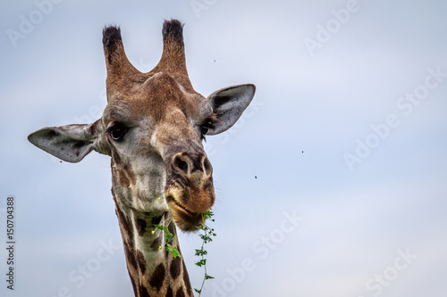© simoneemanphoto, Fototapeta premium Close up of an eating Giraffe.