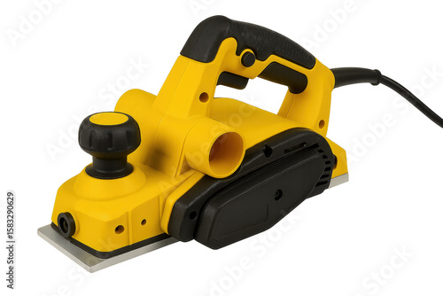 Fototapeta premium Close-up of an electric planer, featuring a vibrant yellow design, showcasing...