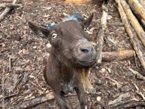 © Francesca Leslie, Fototapeta premium Close up of an inquisitive goat