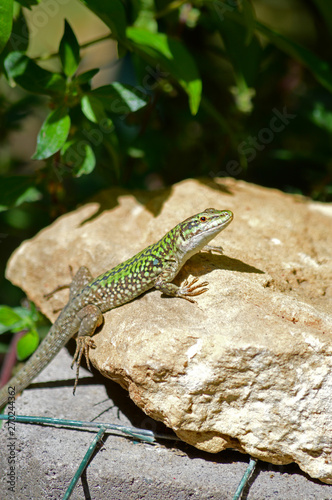 © Simoncountry, Naklejka premium Close-up of an Italian Wall Lizard, Podarcis Siculus, Animal, Nature