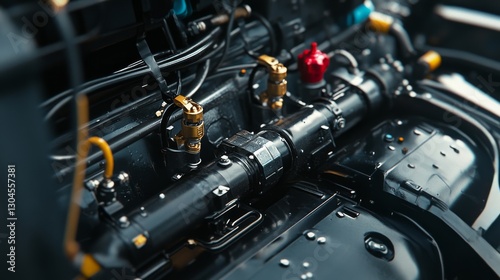 Fototapeta premium Close-up of an NGV fuel system inside a vehicle, showcasing high-pressure gas...