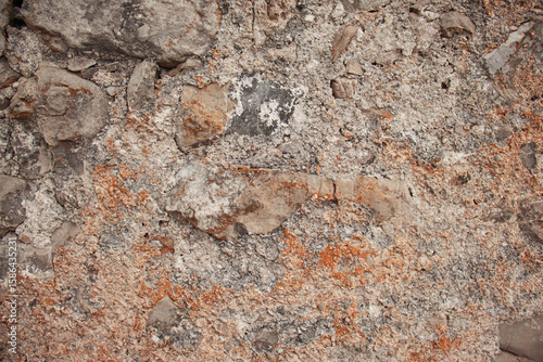 © Olga, Naklejka premium Close-up of an old rustic stone wall with rough texture and natural earthy tones
