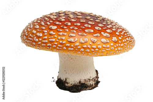 © galang, Obraz premium Close Up of an Orange and Brown Spotted Mushroom Against a Black