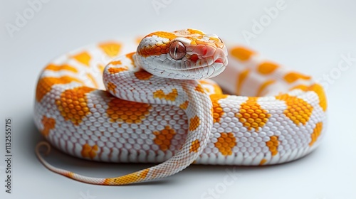 © Arifin Studio, Obraz premium Close-up of an orange and white snake coiled on a white background.