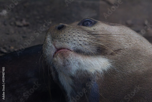 Fototapeta premium Close-up of an otter's face with a focus on its eye and whiskers. The...
