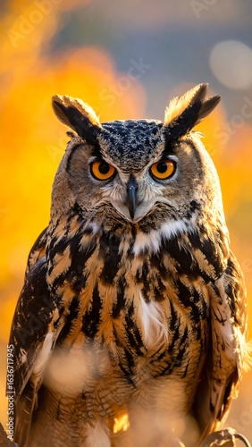 © Bahrul, Fototapeta premium Close-up of an owl in golden light