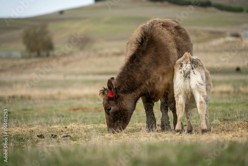 © Phoebe, Fototapeta premium Close up of Angus and Murray Grey Cows eating pasture in Australia.