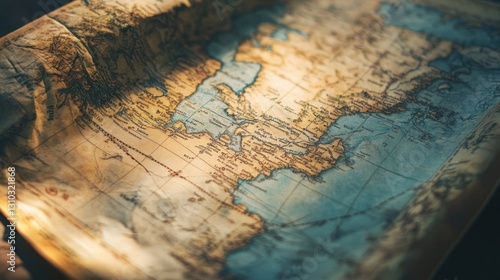 © fajar, Obraz premium Close-up of antique world map, showing age and detail.