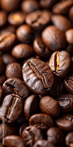 Fototapeta premium Close up of arabica coffee beans with a brownish color