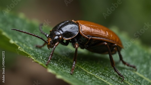 © claudunia, Fototapeta premium Close-up of Atlas beetle on a leaf.