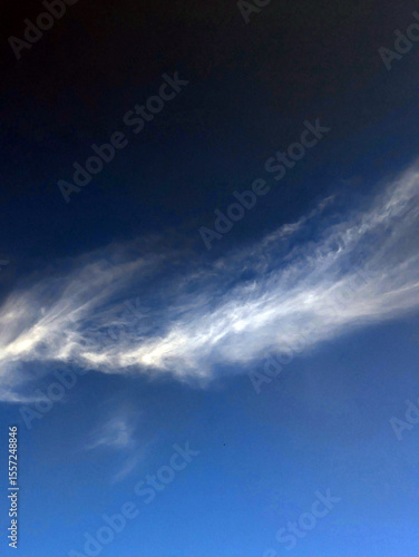 Obraz premium Close up of atmospheric blue black sky with whispy white clouds
