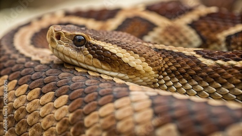 Fototapeta premium Close-up of Authentic Snakeskin Texture: Brown and Beige Reptile Skin Pattern