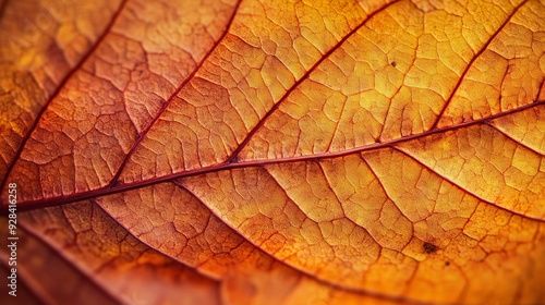 Fototapeta premium Close-Up of Autumn Leaf Veins in Vibrant Orange and Red Tones
