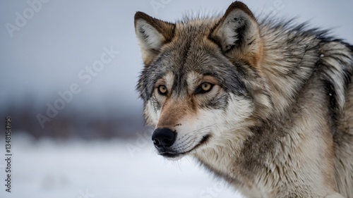 © KeeriwalaGamage, Fototapeta premium Close-Up of Baffin Island Wolf in Deep Snowdrifts