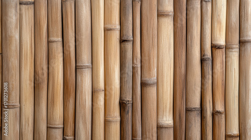 Fototapeta premium Close up of bamboo texture on wall, showcasing natural patterns and warm tones