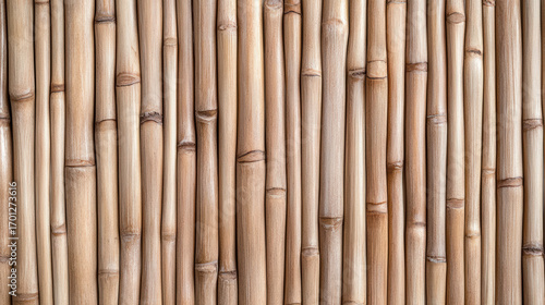Fototapeta premium Close up of bamboo texture on wall, showcasing natural patterns and warm tones