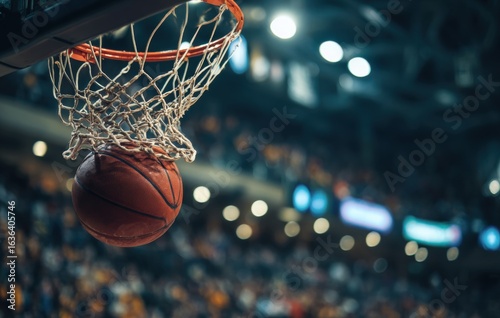 © paisorn, Fototapeta premium Close-Up of Basketball Entering Net in Exciting Sports Venue
