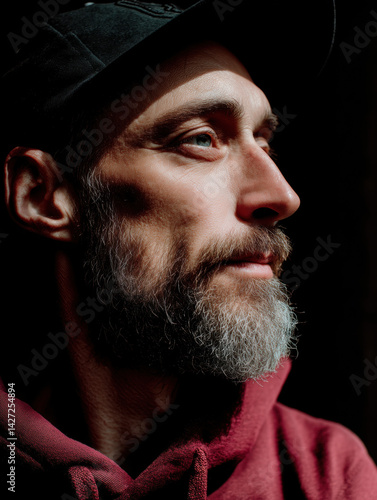 Fototapeta premium Close-Up of Bearded Man. Raw Expression and Natural Light.