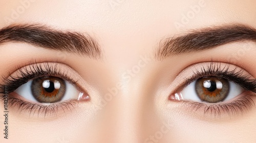 © Flowaiart, Obraz premium Close-Up of Beautiful Brown Eyes with Natural Makeup and Eyebrows