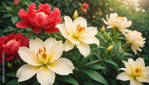 Naklejka premium Close-up of beautiful, colorful flowers, capturing intricate details and...