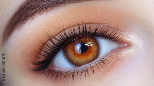 Obraz premium Close-Up of Beautiful Eye with Warm Brown Iris and Lush Eyelashes