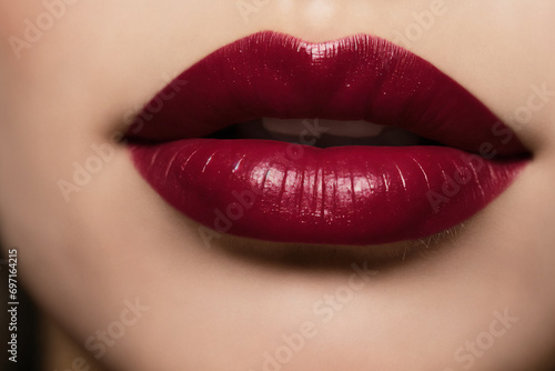 Fototapeta premium Close-up of beautiful lips with bordeaux lipstick