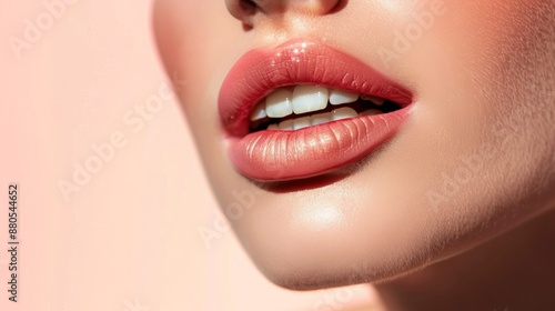 Fototapeta premium Close-up of beautiful lips with light pink lipstick