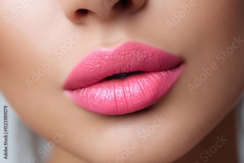 Fototapeta premium Close up of beautiful pink lips showing perfect makeup