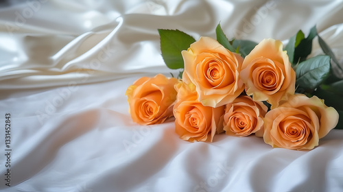 Obraz premium Close-up of Beautiful Roses with Satin Background