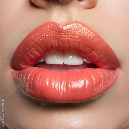 Obraz premium close-up of beautiful tender lips isolated on white background