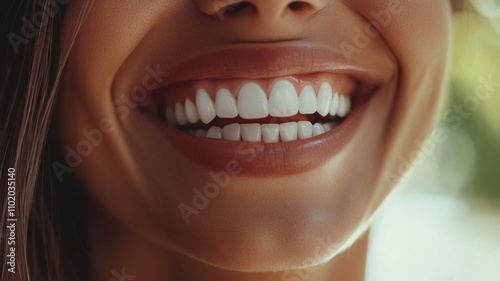 Obraz premium close up of beautiful woman smiling with white teeth.