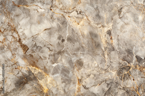 © Eugen, Fototapeta premium Close up of beige bedrock with natural gold veins on marble texture. background. Generative AI