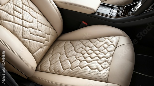 © Arc std., Fototapeta premium Close-up of beige leather car seat with unique quilted pattern.