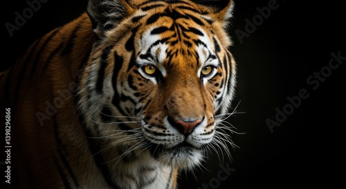 Naklejka premium Close-up of Bengal Tiger with Glowing Amber Eyes