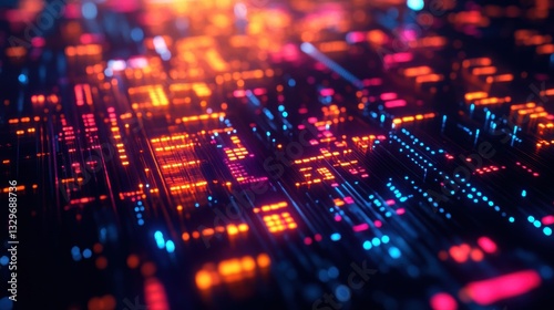 © SepazWorks, Fototapeta premium Close-up of Binary Circuits Glowing in a Futuristic Setting