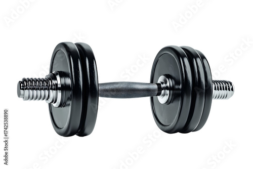 Naklejka premium Close-up of black adjustable dumbbell for fitness and strength training...