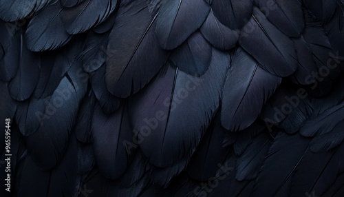 Fototapeta premium Close-Up of Black Feathers with Intricate Texture in Soft Lighting