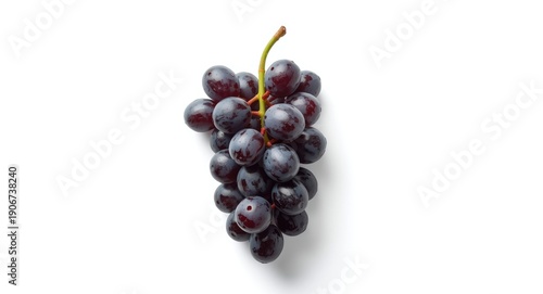 © AkuAku, Fototapeta premium Close up of black grapes holding stems on smooth white isolated background
