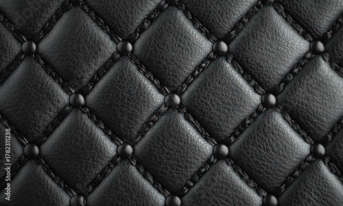 Obraz premium Close-up of black quilted leather upholstery with textured surface and...