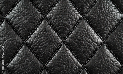 © tiger, Naklejka premium Close-up of black quilted leather with diamond pattern stitching and textured surface
