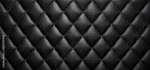 Naklejka premium Close-up of black, quilted material featuring diamond patterns and small,...