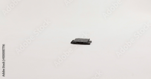 Fototapeta premium Close up of black SD card adapter on light background, minimalistic composition with negative space.