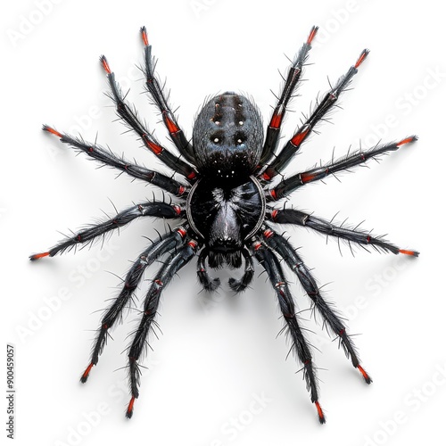 © Oksana, Obraz premium Close-up of black spider with red markings on a white background.