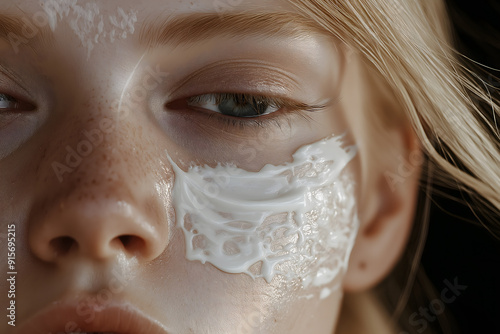 Fototapeta premium Close-Up of Blonde Girl's Skin with Face Cream Applied