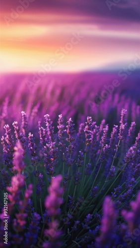 © Mike Mockup, Naklejka premium Close-up of Blooming Lavender in a Field