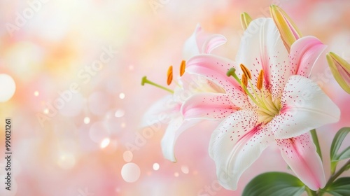 Fototapeta premium Close up of blooming Lily flower with blurred background, copy space.